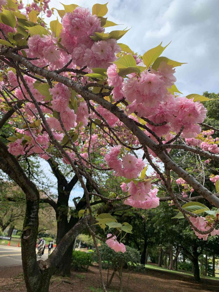 ソメイヨシノが咲き終わると八重桜が待ち遠しくて✨❣️いつも楽しみにしています!桜ほどそんなに本数は無いと思いますが、いつもの場所を探して観に行きます✨🎶🚶♀️お天気が良くなくて空の色も残念なのですが、可愛くて投稿してしまいました😄