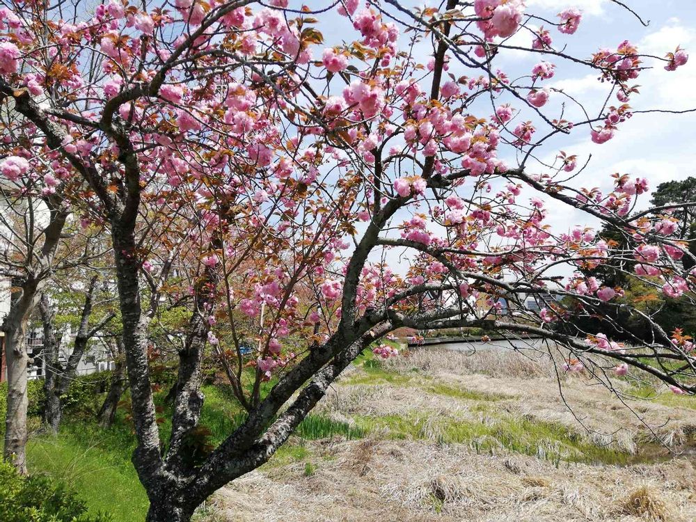 南郷池(京都丹波亀岡 亀山城址内濠跡)の八重桜が綺麗に咲き出しました。