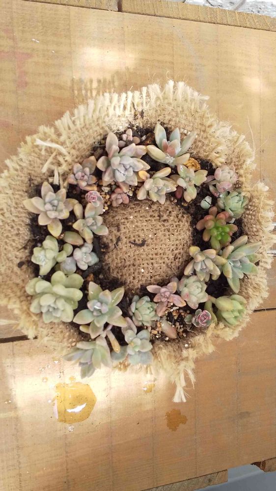 そんな息子が春休み中に作った多肉リース✨カットした苗をブスブス好きなところに挿して楽しそうでした🎵