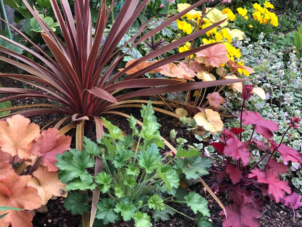 1年前に花壇に植えたコルジリネとヒューケラ☺️