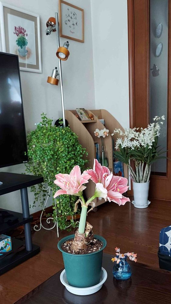 元気なアマリリスと可愛いスイセンがが気分を上げてくれます⤴️⤴️