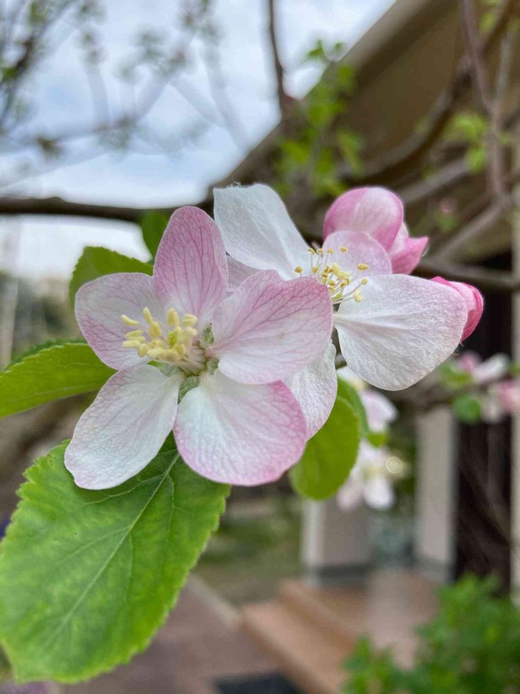 つぼみは結構赤みが強いし、花ひとつひとつは桃色がかっているのに全体を見ると白が強く感じるステキな木です🌳