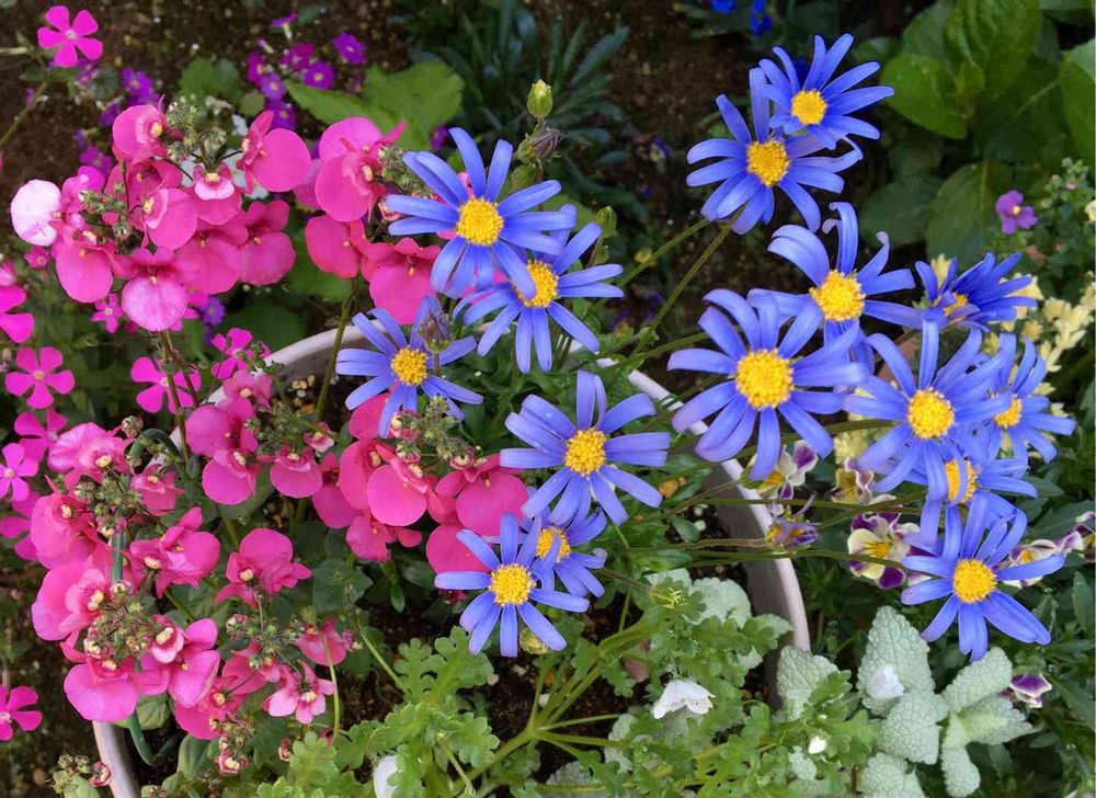 ウチの寄せ植えのブルーデージーさんはお花が少し小さくなってきました😅