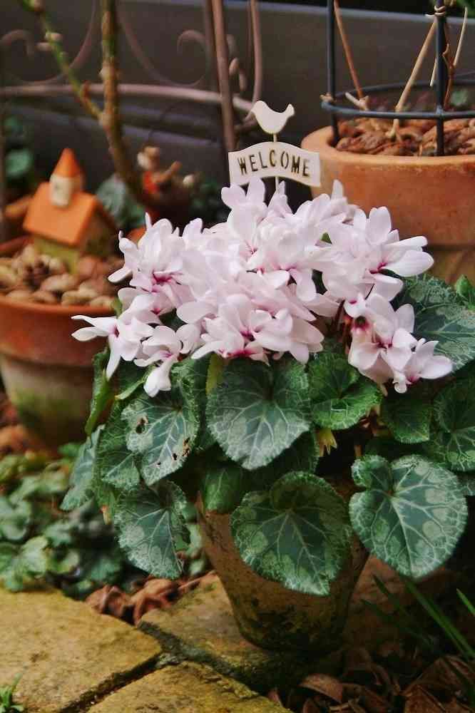 小さな庭,八重咲きシクラメン・チモ ホワイト,鉢植えの投稿画像