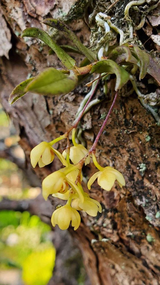 松の木に寄生しているカヤランが可愛い花を付けました。花びらは6ミリ程です。