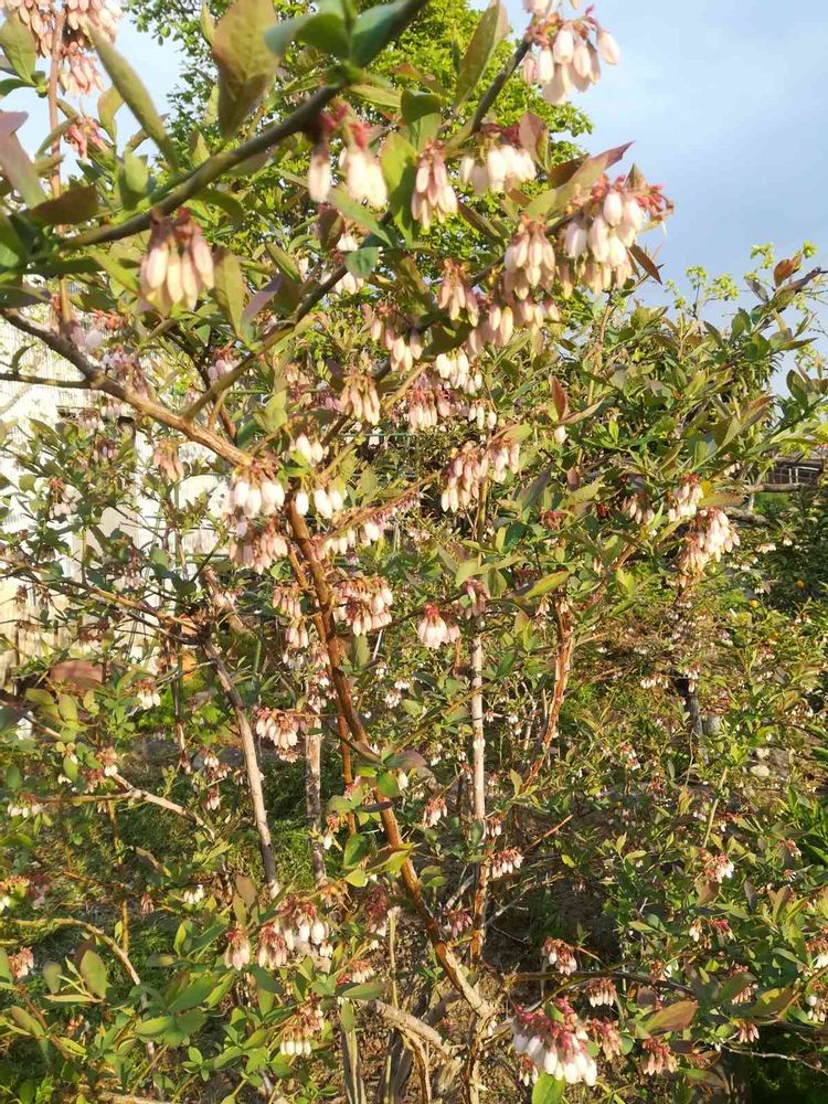 ブルーベリー(ラビットアイ系)の花。毎年たくさん実を付けてくれます。