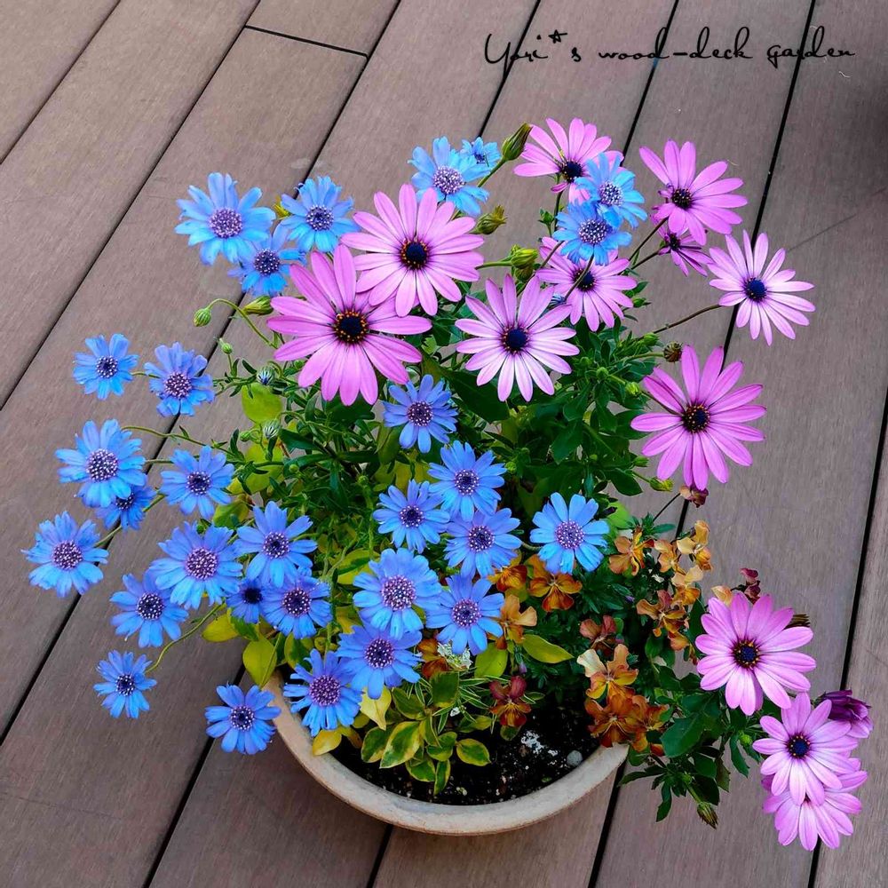 ピンクのオステオスペルマムはブルー系と相性がピッタリですね~💕