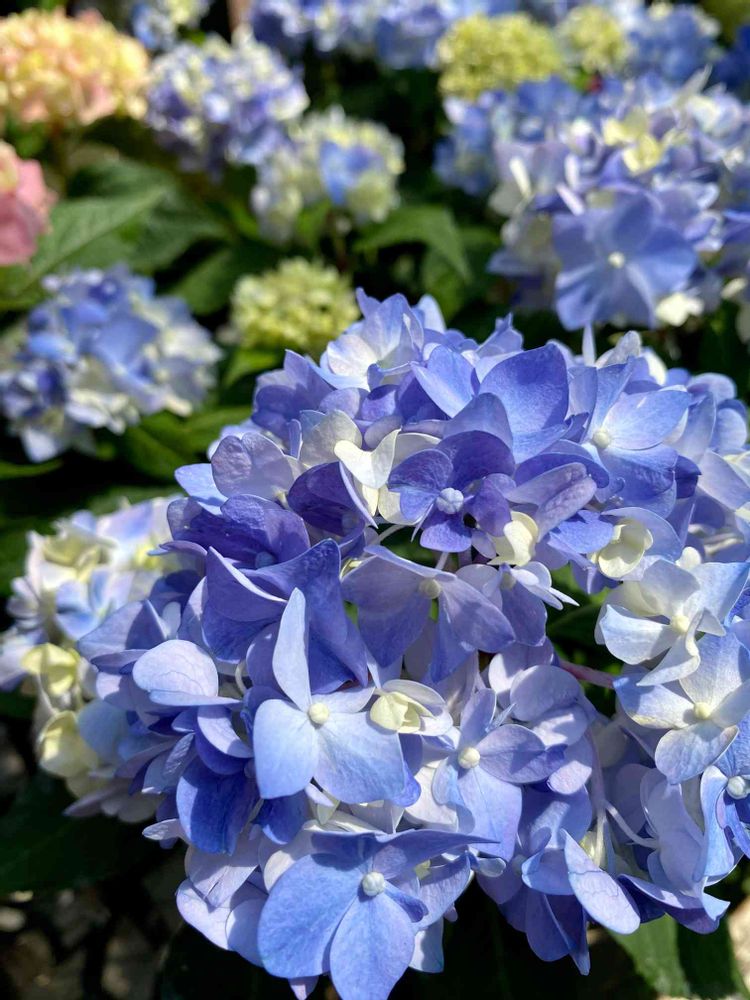 実際は 土のpHに影響されるので、これらの色に紫色も入ってきます。