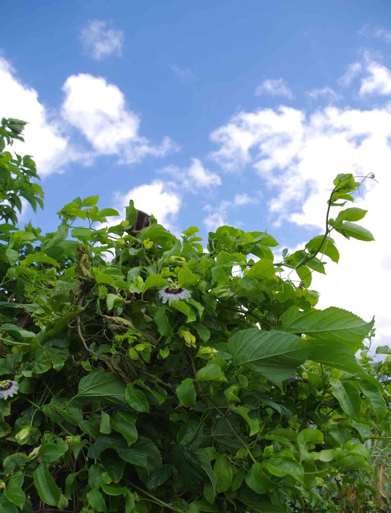 パッションフルーツを伸び放題にしたら桑の木が飲み込まれてしまった