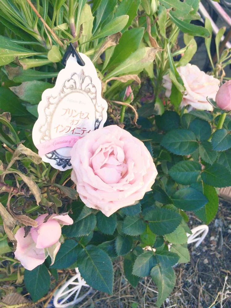 玄関先にお花が無く、他のグリーンも思い切って刈り込んでしまったので寂しくてポットまま置いてます🌹可愛い色(^-^)