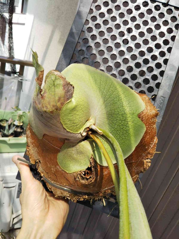 去年、やっと鉢からパネルに着けたうちの御神木ビフルカツム。そもそも鉢時代のシャクレた貯水🌿のせいもあるけど、なんか角度が違うような気がする🤔💦