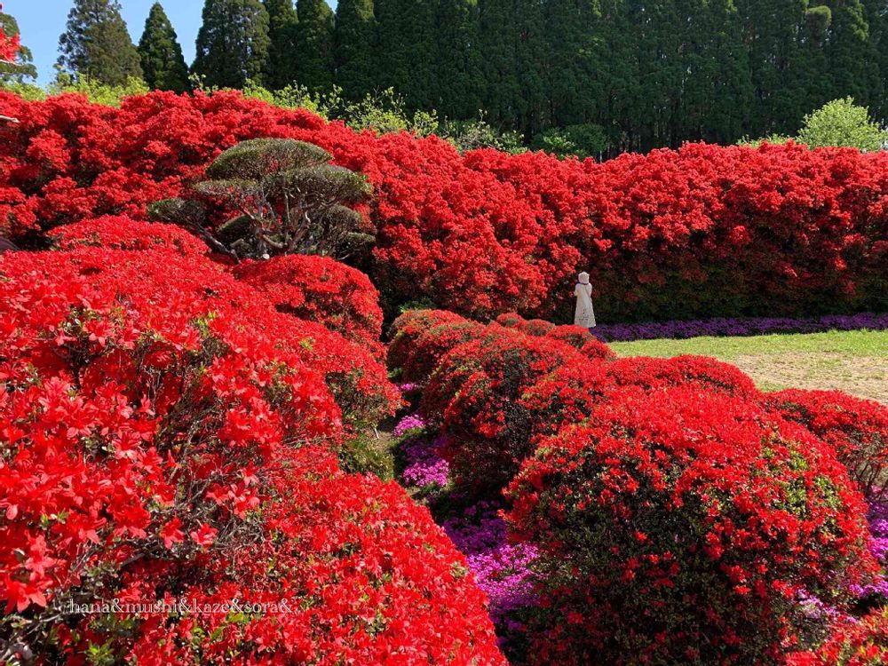 私の後ろ姿は、キリシマツツジの大きさを知る為の比較になればと思い、入れました🤣お気に入りのワンピースが想像をかき立ててくれて嬉しいです🥰💕💕