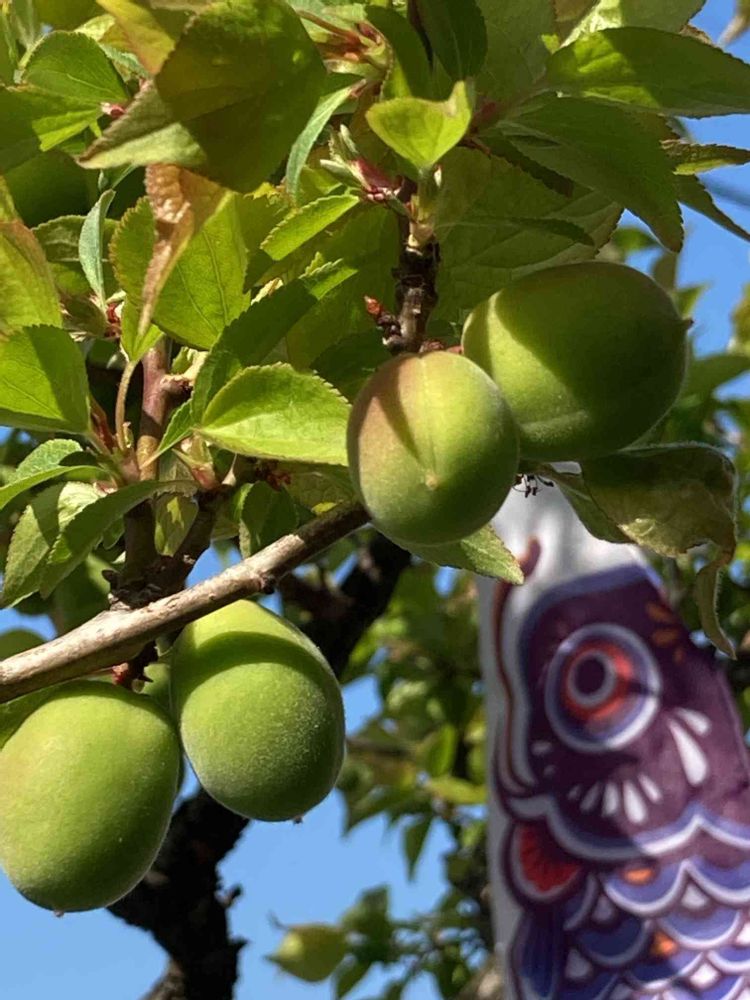 大きくて輝いている梅の実を、美味しそうだなぁ?!と想い、鯉のぼりが昇って来たのかな!?😂