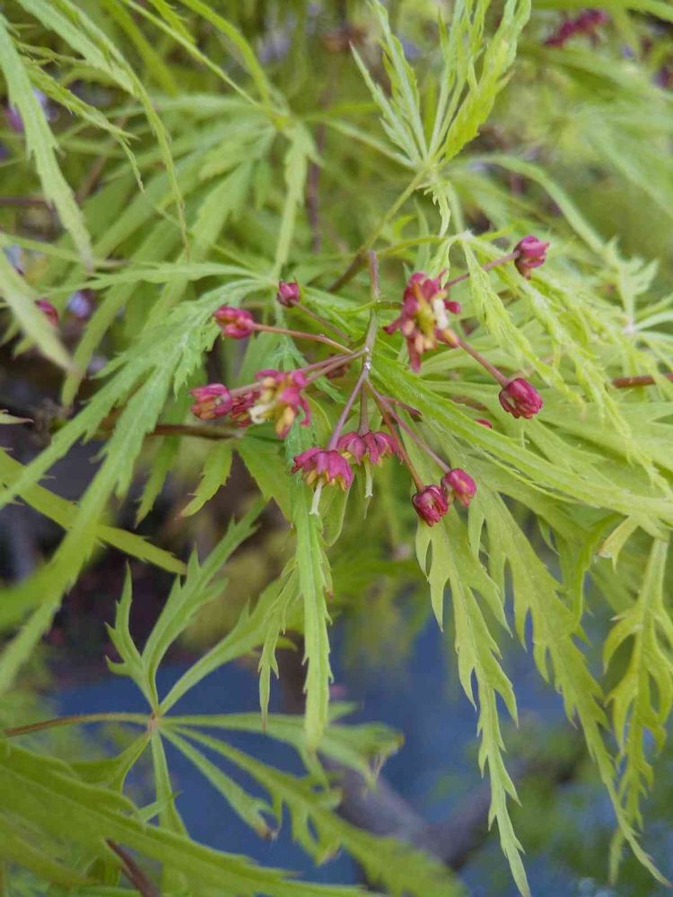 庭の「アオシダレモミジ」です。 花が咲いています🎵