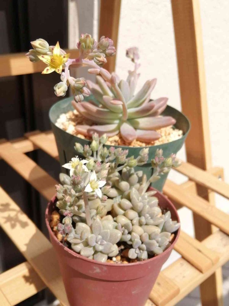 2ヶ月前にお迎えした多肉さんも花が咲きました🌼