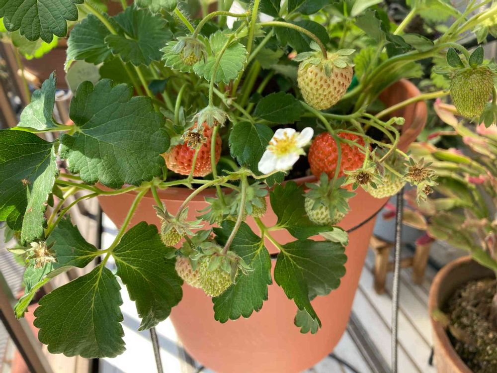 昨年GSで購入、いちご5種🍓セット。「さちのか」が美味しそうに実って来ました。🎶