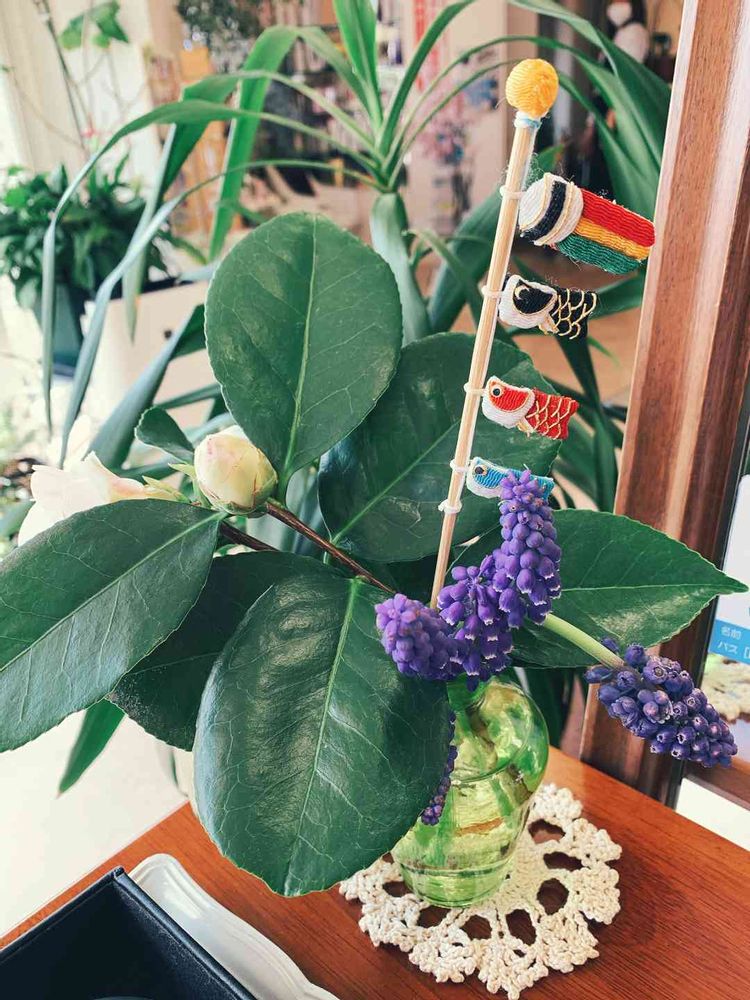 ムスカリ,椿の花,鯉のぼりの飾りの投稿画像