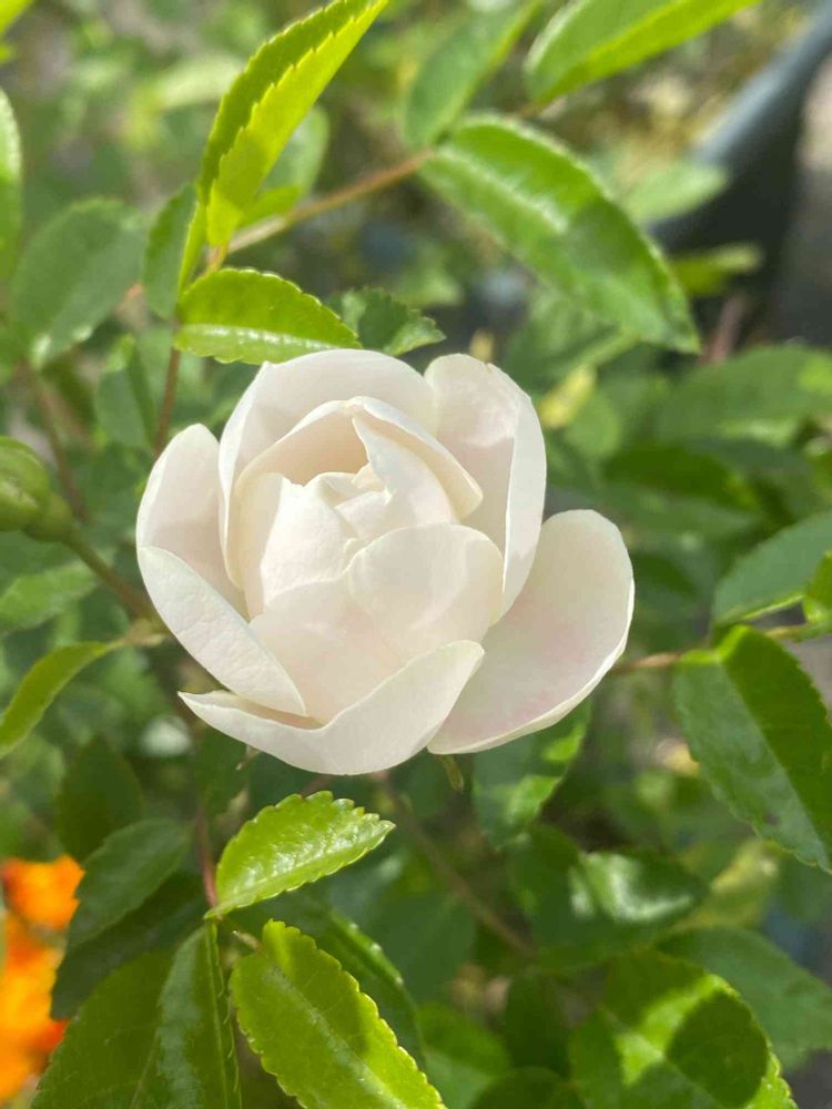 マザーズディの仲間で花は「白雪姫」の名のとおり白く、マザーズディと同じように丈夫で絶えず花をつけ、照葉も綺麗で雪の国のメルヘンを思わせます。枝変わりを起こしやすく途中でピンクやオレンジの花が混じることがあります。別名は「スノー・ホワイト」。