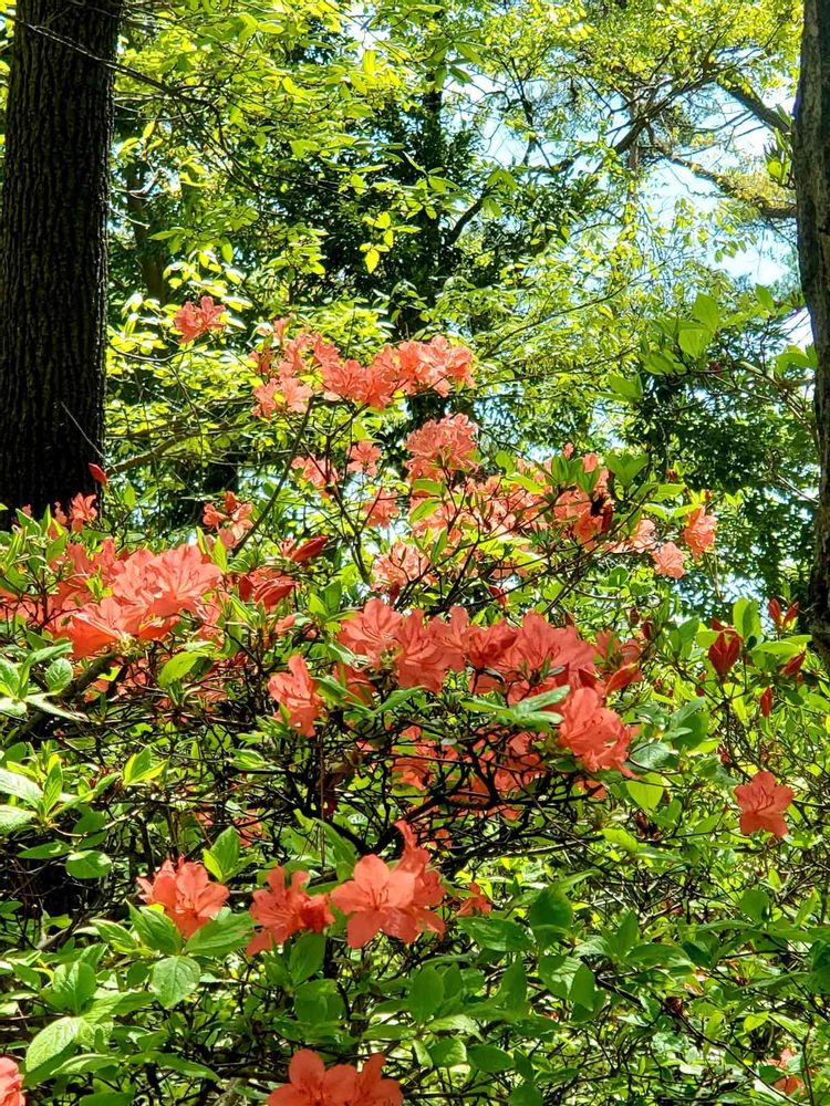 ヤマツツジのオレンジの花💠が新緑に映えて🎵