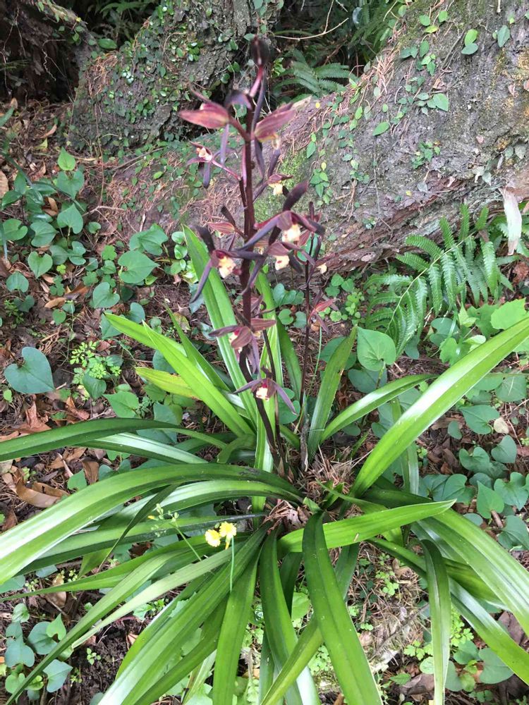 報歳蘭 実家の大きな木の下で鉢ごと地に埋められたまま花が咲いています。