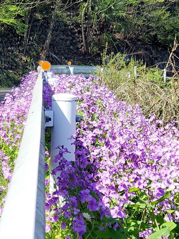 ムラサキハナナ沢山ガードレール沿いに