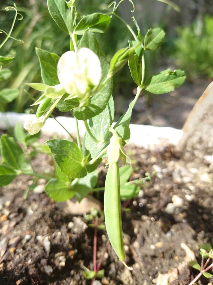 ナメクジにやられてましたが、1つさやえんどうがなってました🤗