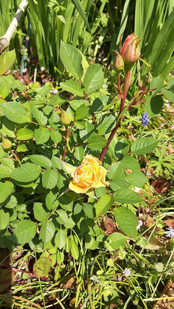 数年前父の日に貰ったミニ薔薇が畑で幾つか蕾を付けて咲いていました。誰も見ないところで咲いているのでカットして来ました。