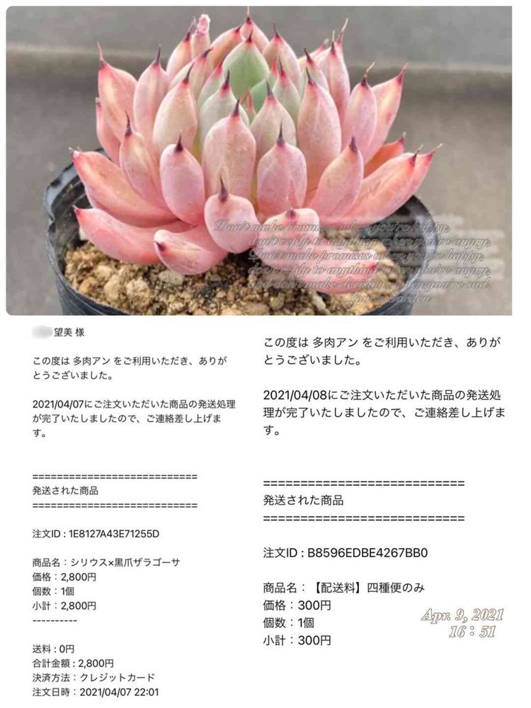 多肉ちゃんが発送された❣️