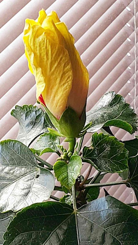 やっと蕾が膨らんできた黄色のハイビスカス🌺💞☺️