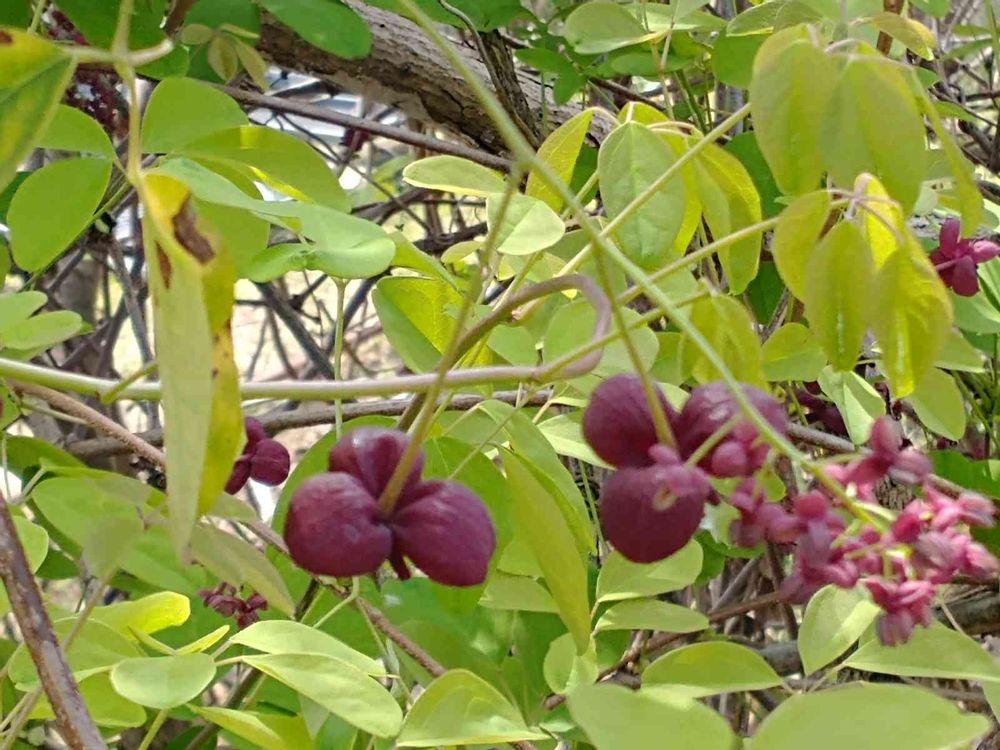 うちの近所でも、アケビの花は、よく見かけるけど、実はとんと見ません。