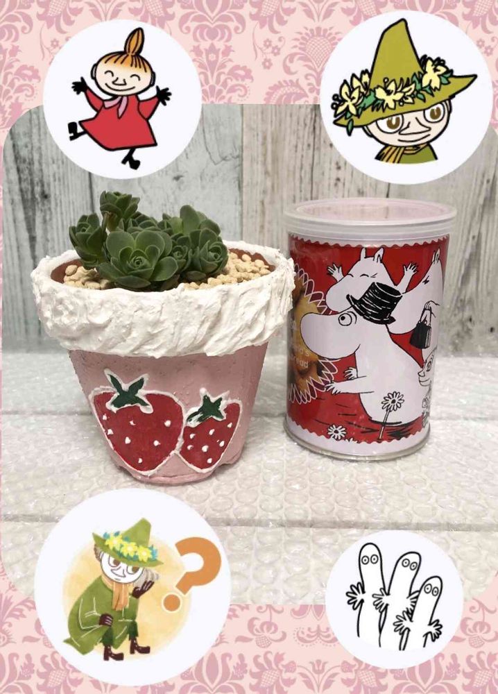 とても可愛い ムーミン缶🥫とリメ鉢😃💗
