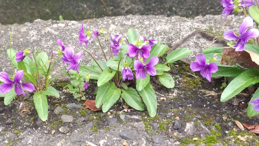 アスファルトに咲くたくましいすみれ