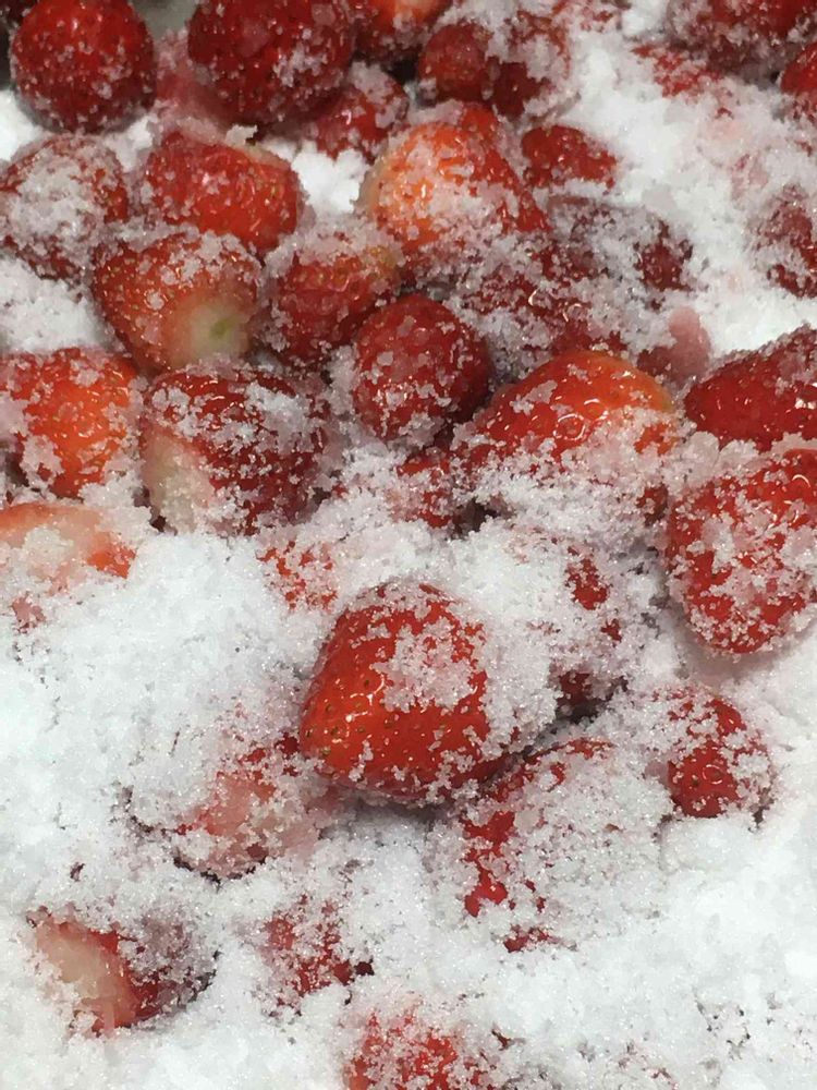 砂糖をまぶして数時間置くと、いちごの中の水分が出てくれるので、混ぜてすぐ火にかけるよりも加熱時間が短くて済みますよー。ぜひお試しを✨
