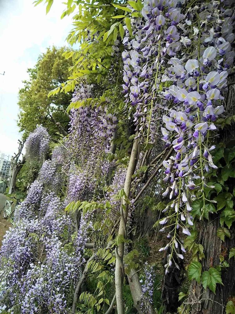 昨日、個人のお宅のフェンスに絡ませた見事な藤を見つけたよ。