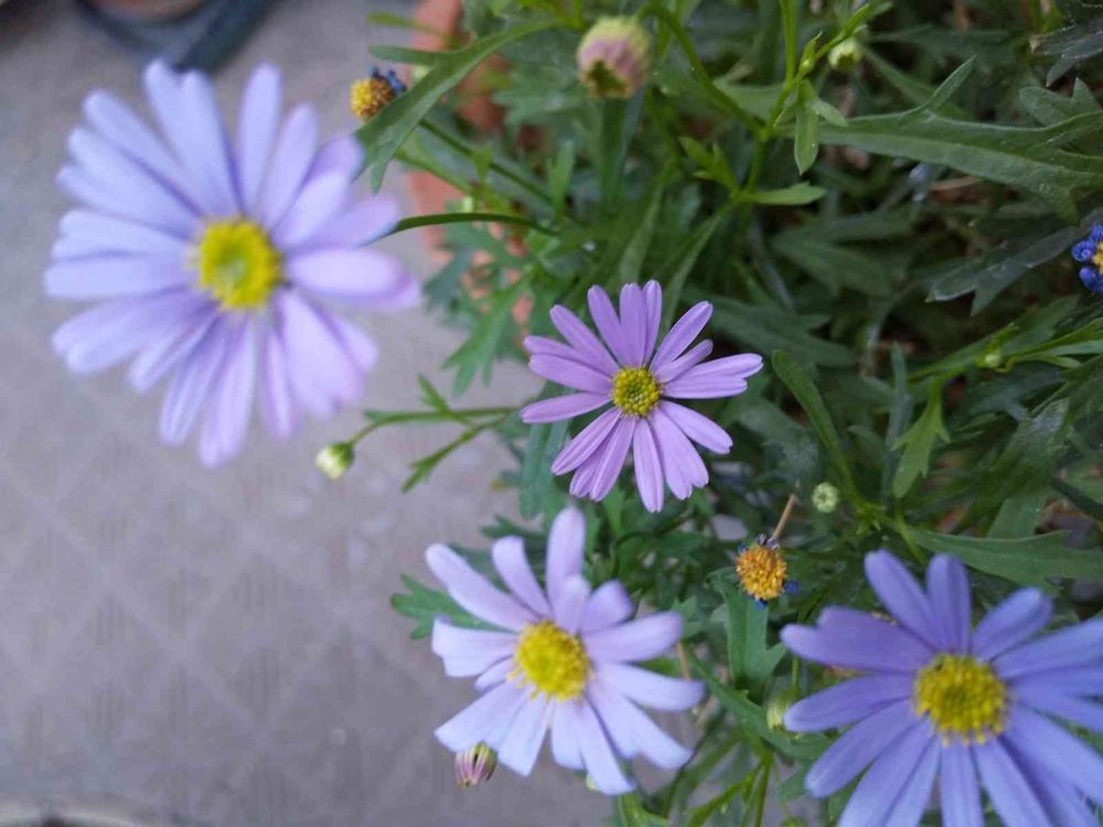 ベランダのブラキカムの花で…