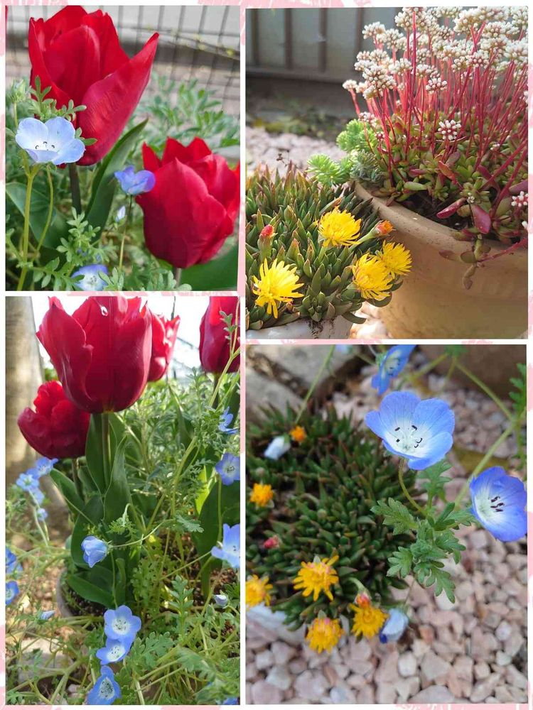 赤❤️ 青💙黄色💛 春のお庭は華やかでいいね❣️