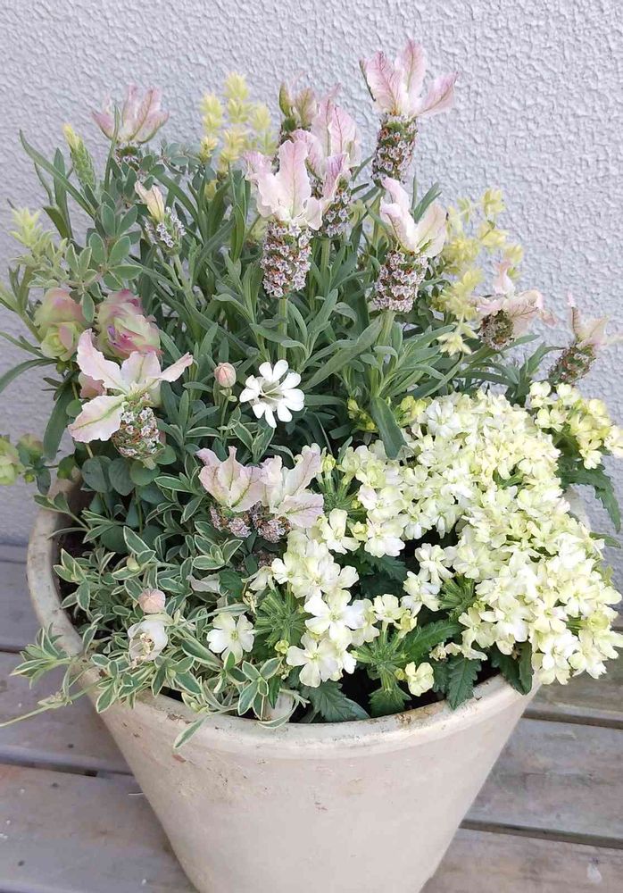 ミチサンワールドの淡い色合いの寄せ植えがいいですね🤗🥰