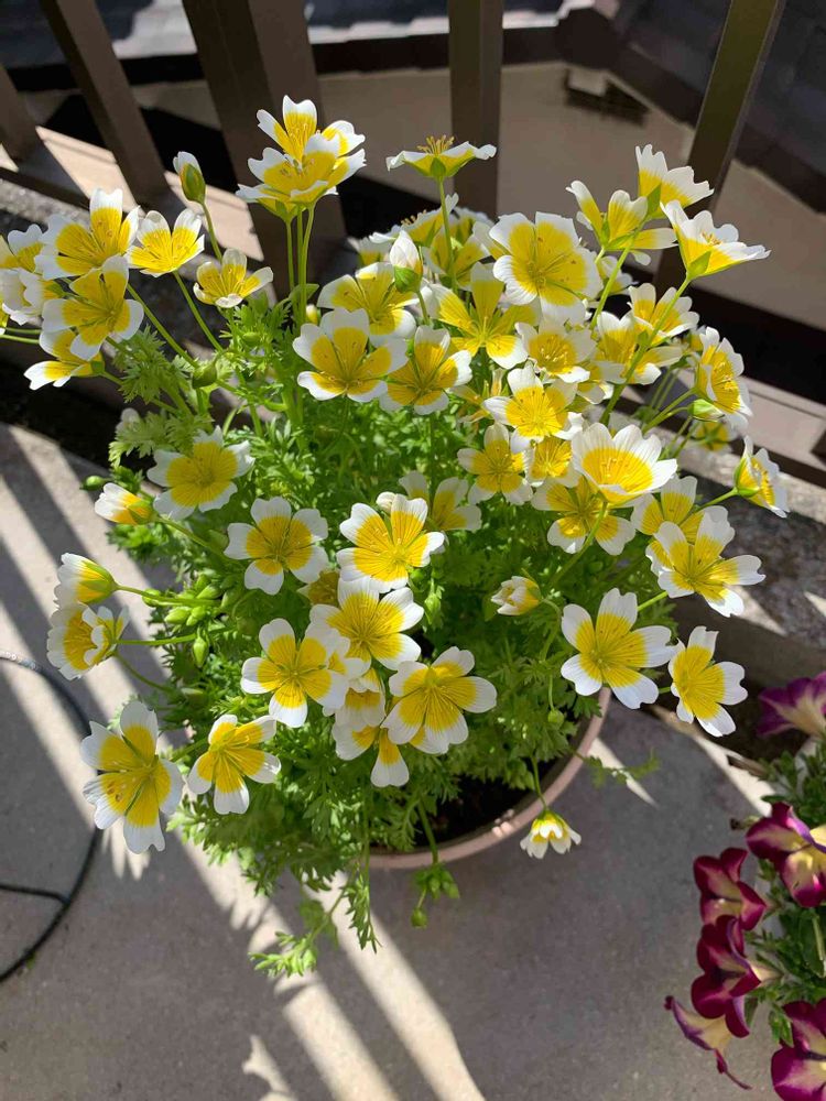 先日、投稿した、リムナンテス(英名:ポーチド・エッグ・プランツ)もたくさん花咲いてきました。可愛らしいです🥚🥚🥚🥚🥚