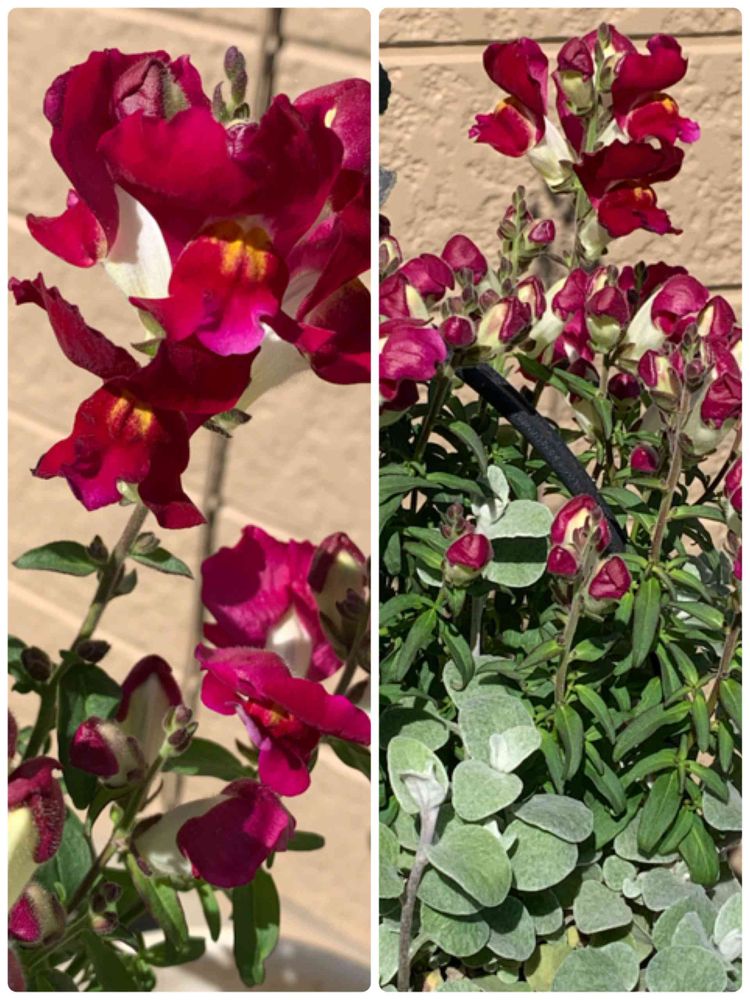 寄せ植え鉢に入っていて、花が咲いてみてこんなシックな色の金魚草があるんだわとビックリ💓