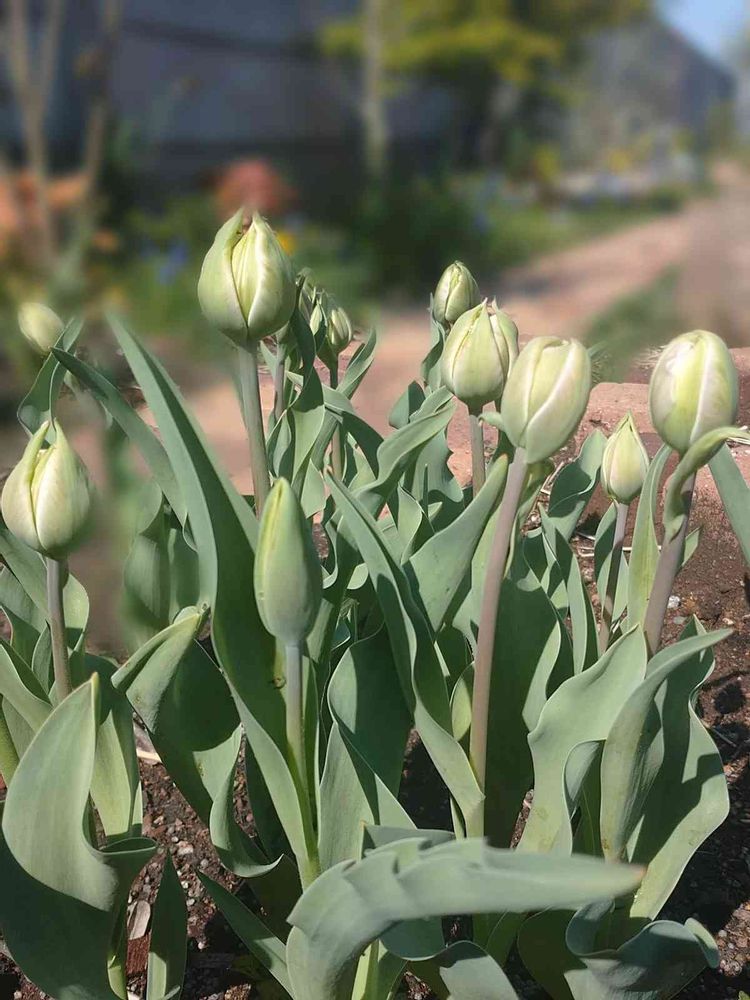 去年プランターに植えたのを庭に埋めてたら出てきました😊 予定ではグリーンとピンクが咲きますよ😊 また見てくださいね🤗🌷🌷🌷