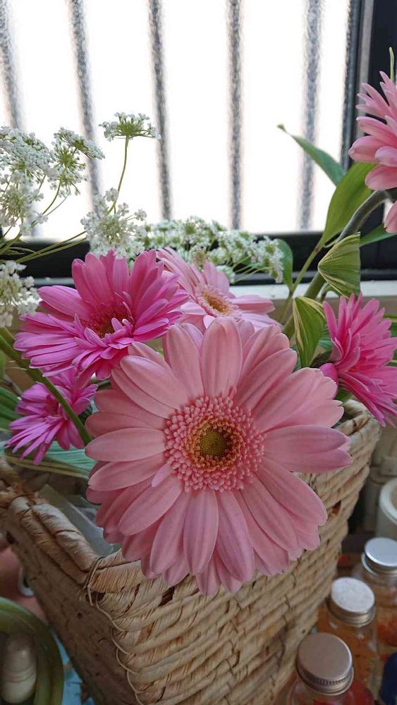 ピンクのガーベラで部屋が賑やかになってきました☺️