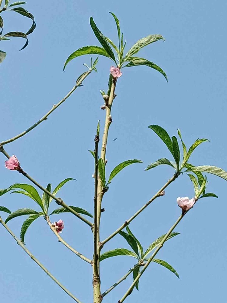 耐暑性桃🍑トロピックビューティー種、次々開花しています。日本の桃みたいに一斉に咲くと綺麗なのですが、まばらに不定期に咲いて不定期に収穫だったら摘果作業が省略出来ると考えられなくもないか?