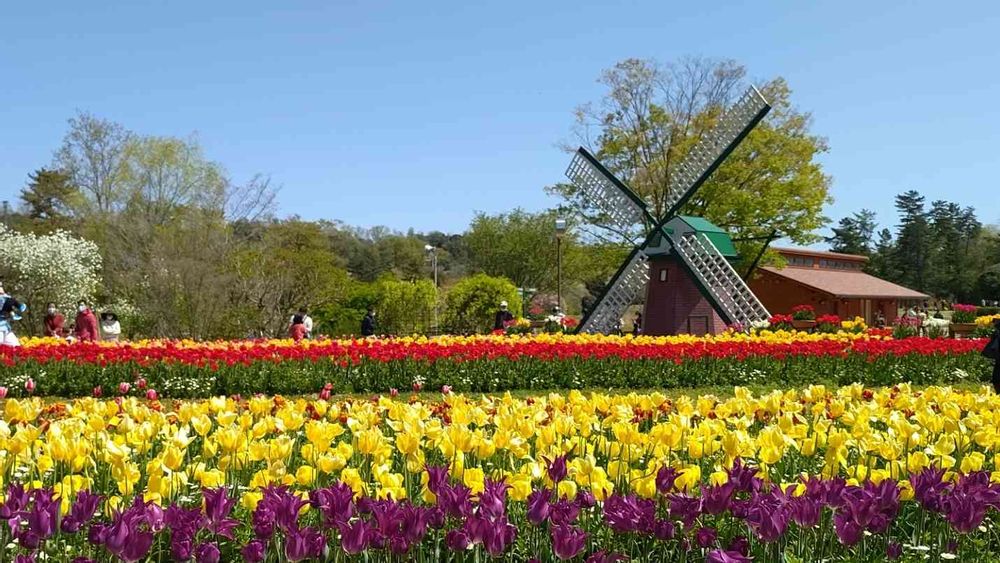 風車にはチューリップ🌷が似合いますよね😆👍