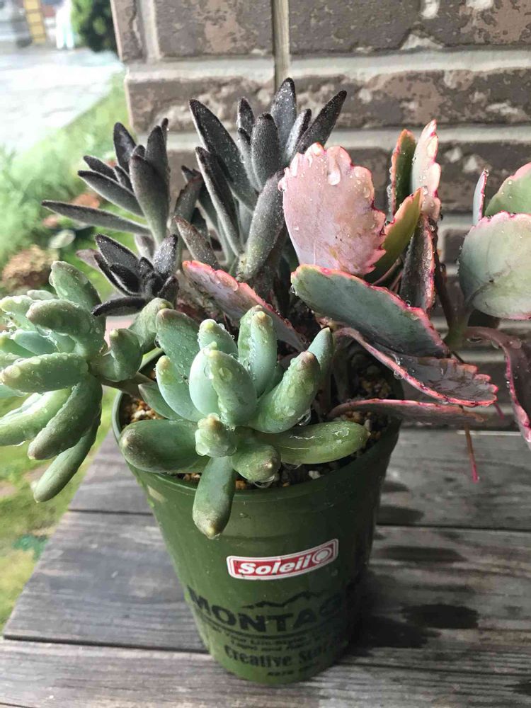 先日のカリシアに侵食された寄せ植えの中に居た背の高すぎる子達だけをこの鉢にとりあえずのつもりで入れておいたのですが、もうこのままで良しとします🤣