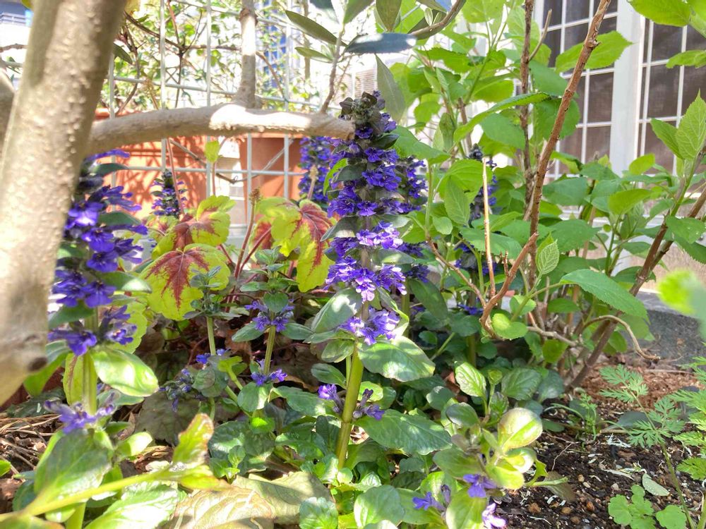 日陰ゾーン アジュガのジャイアント 去年は少ししか咲かなかったけれど、今年は花が増えました。もっと咲いてくれないかな