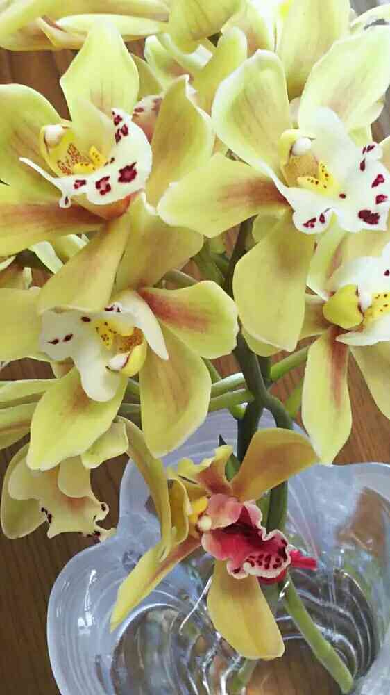 クリーム色した シンビジュームが咲いたので 花瓶に生けました💛
