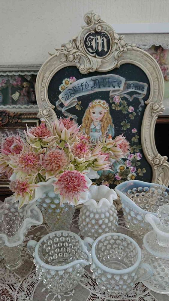この凸凹花瓶や小物はホブネイルと言ってアメリカのアンティークです〰️✨