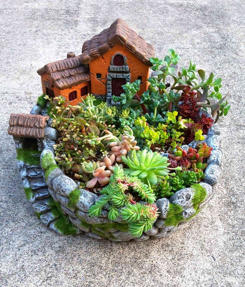 ホームセンターで箱庭風のいい感じのプランターを購入したので、先日GS友から頂いたセダムにうちのセダム等を付け足して寄せてみました🏠️
