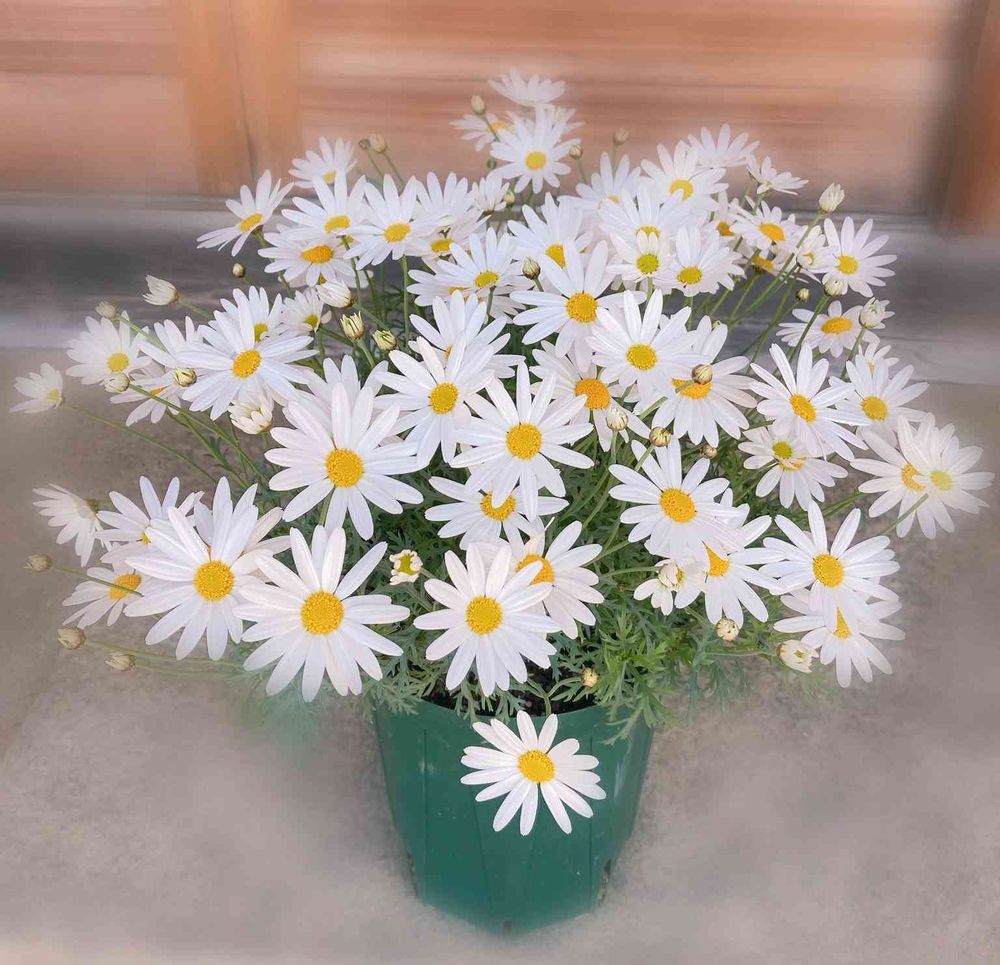 ...それから3年目の春、今年も挿し木で育てた可愛い白マーガレットが満開を迎えています🐝