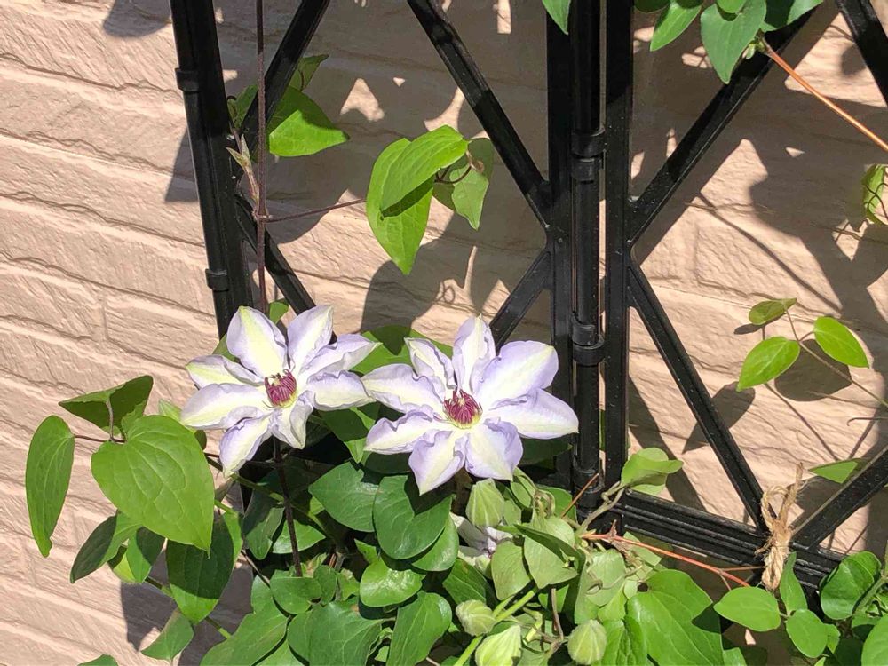クレマチスが開花!昨年はあまり花が付かなかったけど、今年は蕾が沢山つきました。肥料大事。